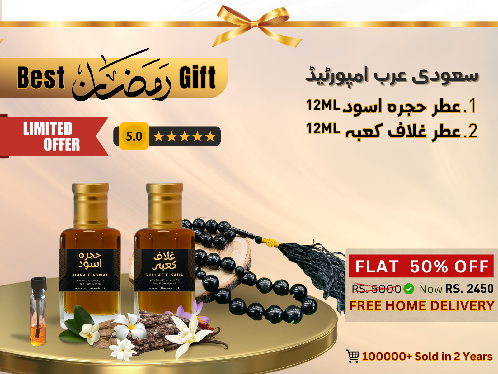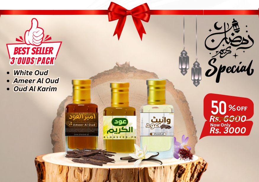 Pack of 3 Attars (Ghulaf-e-Kaaba, Hijra-e-Aswad & Oud Al Haramain) & 100 Beads Tasbih - Ramadan Special🥇